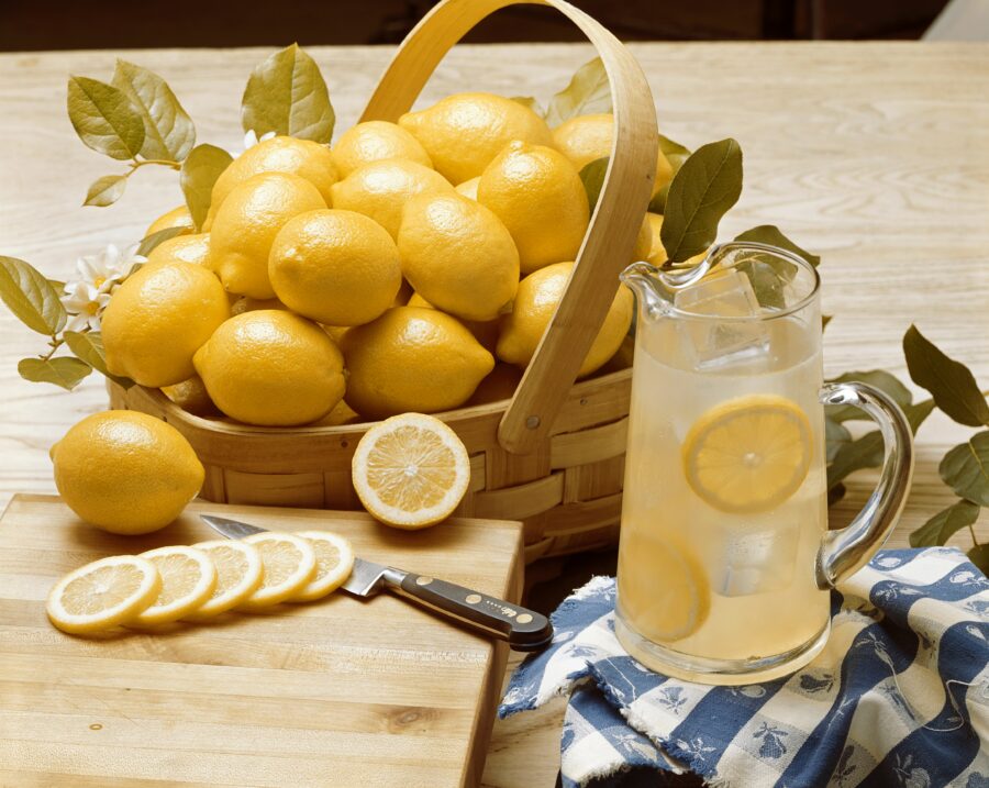 - Στύψτε το χυμό λεμονιού. Ρίξτε το σε μια μεγάλη κανάτα. Προσθέστε νερό και τα φρούτα που έχετε ήδη προετοιμάσει με το χυμό που απελευθερώνεται από αυτά.