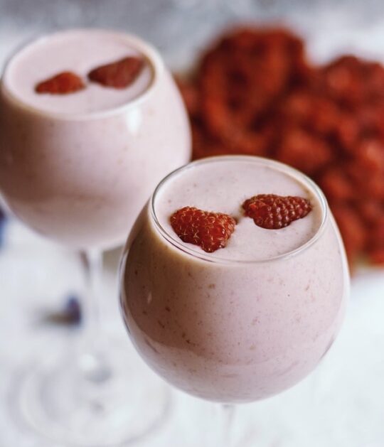 Μια συνταγή με δροσερή και ελαφρώς γλυκιά γεύση. Η μπανάνα εκτός από άφθονο κάλιο μας χαρίζει και την απαλή γεύση της, το γάλα αμυγδάλου μας προσφέρει τις πρωτεΐνες του και η φράουλα την αναζωογονητική της δράση.