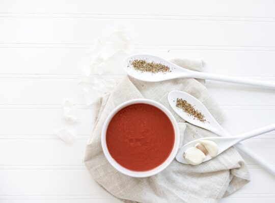 Ζεστή ντοματόσουπα με γιαούρτι και Μαστίχα